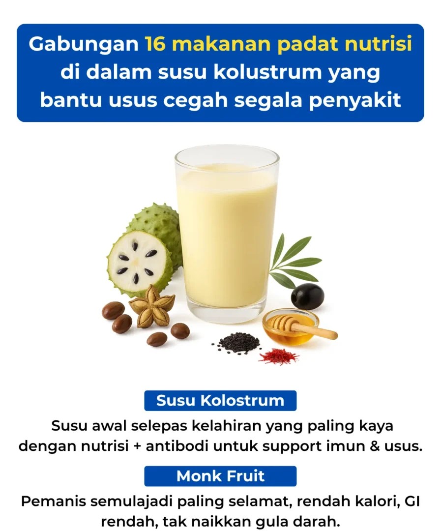 ✔ Jangan bancuh dengan air yang terlalu panas supaya khasiat kolostrum dan probiotic tidak terjejas.